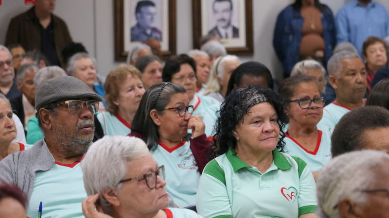 Em seguida, grupos de idosos presentes apresentaram demandas, que foram respondidas pelas autoridades ou encaminhadas para setores responsáveis esclarecerem na sequência.