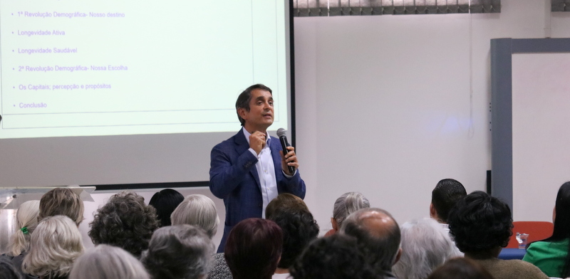 A palestra ficou a cargo do convidado Dr. Egidio Lima Dorea, médico e professor da USP, coordenador da USP 60+ e diretor da ATIVEN Inovação e Longevidade. Sob o tema “Como Envelhecer de Forma Saudável e Ativa”, o profissional falou sobre longevidade, trouxe ideias e informações para inspirar os participantes, instituições e governo a realizarem projetos na cidade.