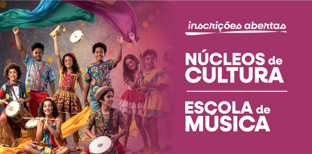 Núcleo de Cultura: teatro, pintura em tela, dança de salão, capoeira, ballet, violão, desenho e dança afro