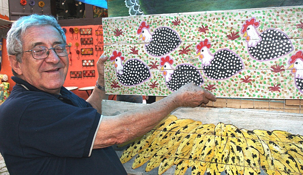 A mostra apresentará pinturas do artista no estilo naïf, que retratam o Brasil com motivos religiosos, fauna, flora, folclore, festas, lendas, frutas e animais. Todos os trabalhos foram realizados em madeira reciclável.
