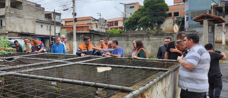 Ao final da reunião, o prefeito Dr. Ramon Corsini assinou o ofício que formaliza a solicitação de parceria com o Governo do Estado para a construção de um plano de ação voltado à solução definitiva do escoamento de águas pluviais na região do Parque Paraíso. Em seguida, convidou os técnicos da Defesa Civil estadual — capitão PM Andrade e capitão PM Tadeu — e da SP-Águas — engenheiros Augusto Mendes, Ivan de Queiroz e Hélio Hara — a realizaram uma vistoria técnica no local. A visita possibilitou um entendimento aprofundado da situação, o início dos estudos técnicos e o apontamento de alternativas para solução do problema.