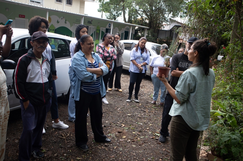 Durante a iniciativa, os profissionais puderam partilhar saberes relacionados *a nutrição, presença no preparo e a memória afetiva relacionada aos alimentos preparados com afeto, portanto, não processados e naturais, e a conexão de tudo isso em suas atividades. Além disso, ao longo do encontro, puderam conhecer as instalações do  Viveiro Municipal, sede da ELEA, agregando noções de compostagem e da produção agroecológica de alimentos, suas propriedades e benefícios para a saúde humana e planetária.
